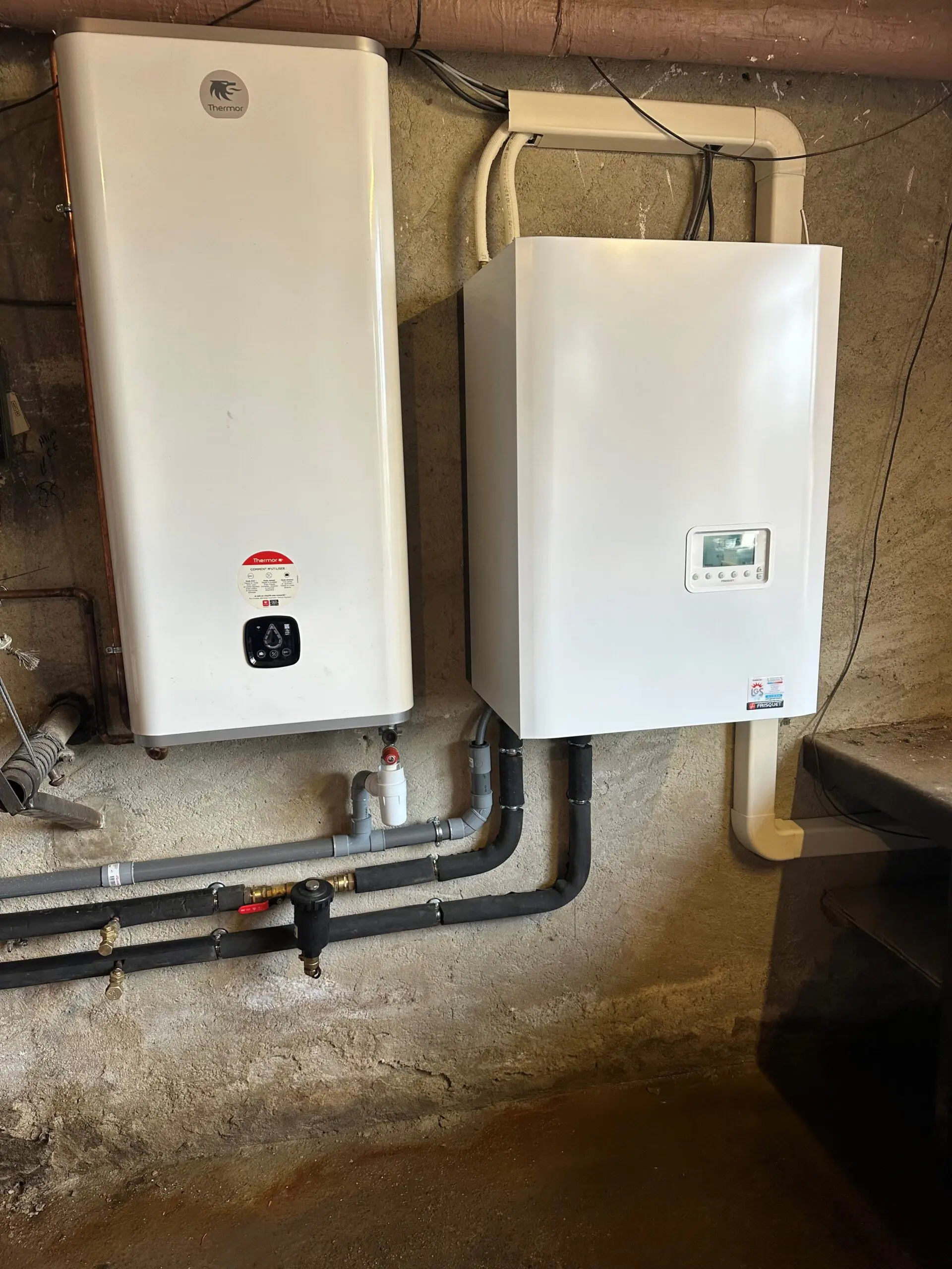 Pose d’une pompe à chaleur air/eau Frisquet TEAMAO 14 KW en remplacement d’une chaudière fioul à ST ETIENNE LA VARENNE