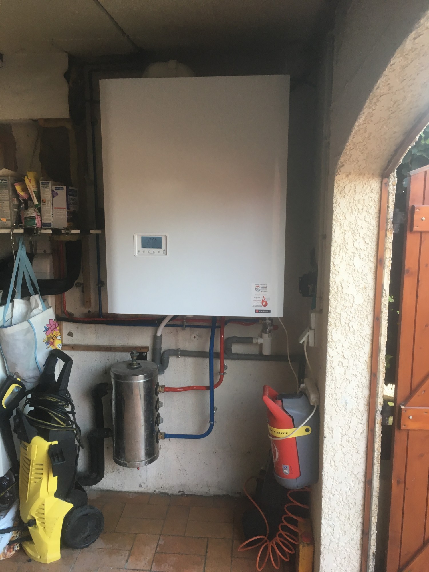 La chaudière Frisquet Hydroconfort se compose d’un corps de chauffe de 20 Kw à Condensation ainsi que d’un Ballon de 80 Litres en Inox ce qui permet d’obtenir de très bonnes performances en sanitaire ainsi qu’un réel gain en confort car celle-ci à un débit d’eau chaude sanitaire multiplié par 2 par rapport à l’ancienne chaudière.